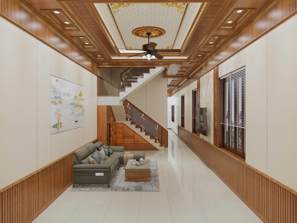 • Thanh lam trần hộp: Các thanh lam treo từ trần, tạo hình khối hoặc đường thẳng song song, dùng để trang trí.