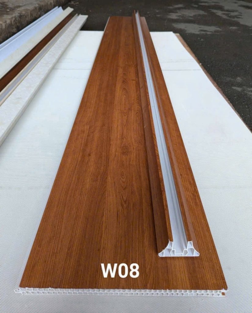 - Loại vật liệu: Tấm nhựa PVC, nhựa Nano (cao cấp hơn), nhựa giả gỗ, giả đá….